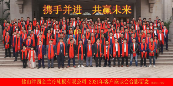 为答谢一直以来关注和支持津西金兰发展的广大客户朋友,进一步增进沟通了解,加深友谊,更好地服务客户,创造双赢,近日,津西金兰2021年客户座谈会在佛山高明碧桂园凤凰酒店凤凰厅隆重举行,来自各地的客户老板、客户代表及合作伙伴150余人欢聚一堂,共同分享过去一年的收获,共话美好的未来。