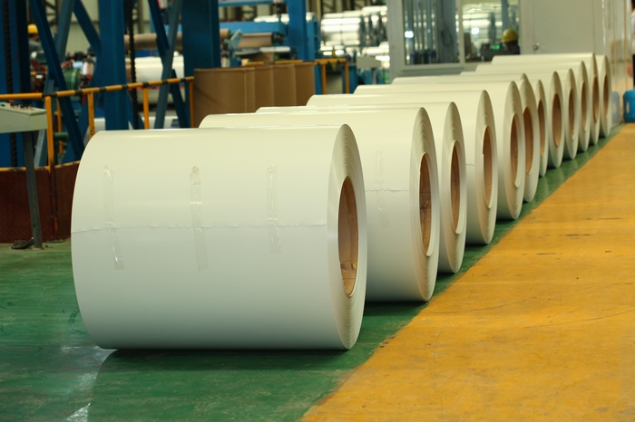 开卷→缝接→压平→活套储存→碱洗脱脂→刷洗→碱洗脱脂→冲洗→化学转化处理→初涂→烘烤→冷却→干燥→精涂→烘烤→冷却→干燥→出口活套储存→涂蜡→卷取。